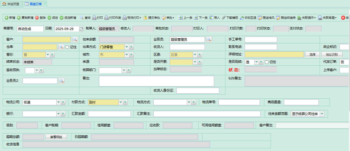 - 用于管理向下游批发客户的大量出库销售(批发)订单信息