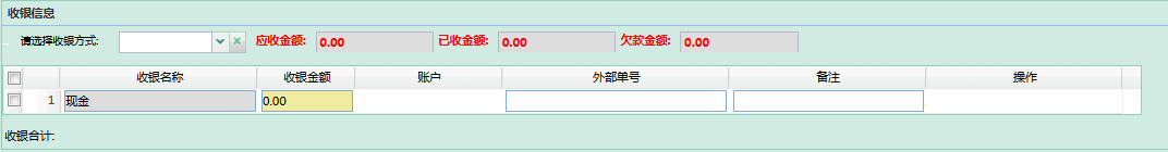 - 选择收银方式:下拉选择收银方式