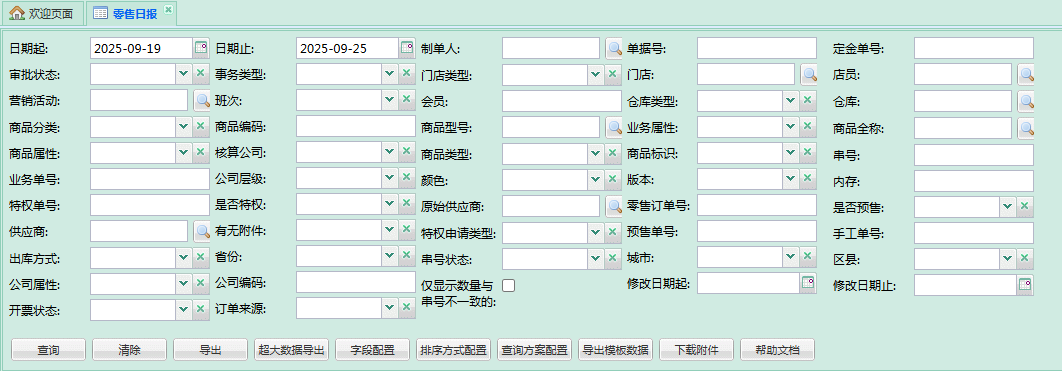 - 营销活动:文本搜索框,根据单据中商品的营销活动进行查询