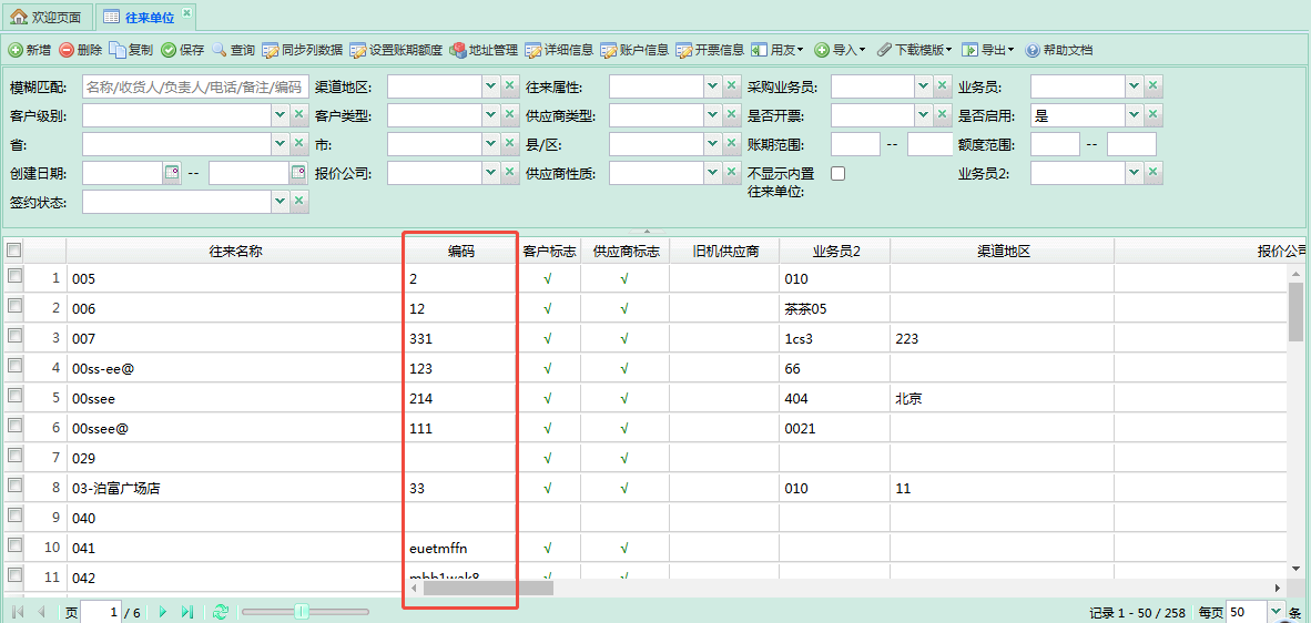 3.4、在【基础数据】—【往来单位】- 编码 中,填写旺店通 客户 / 供应商编码
