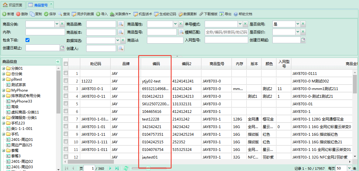 3.2、在【基础数据】—【商品型号】— 编码 中,填写旺店通【货品档案】-商家编码