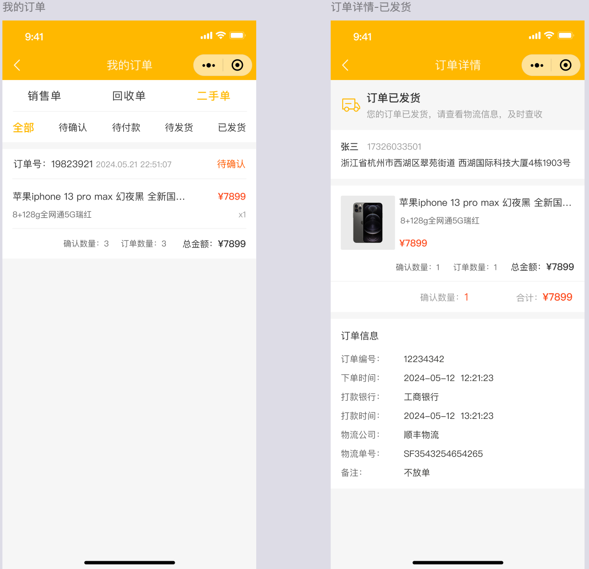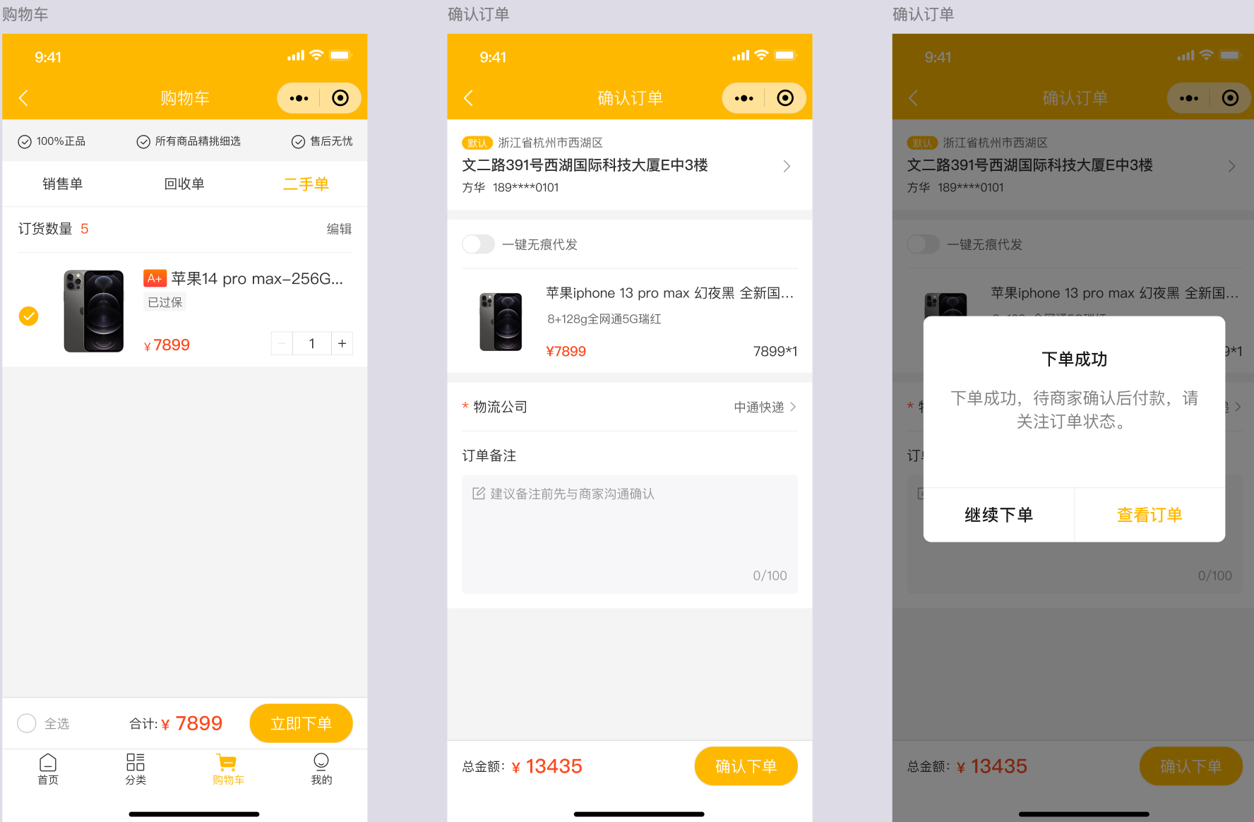 功能说明:集中处理来自小程序或后台手工录入的二手机订单 。