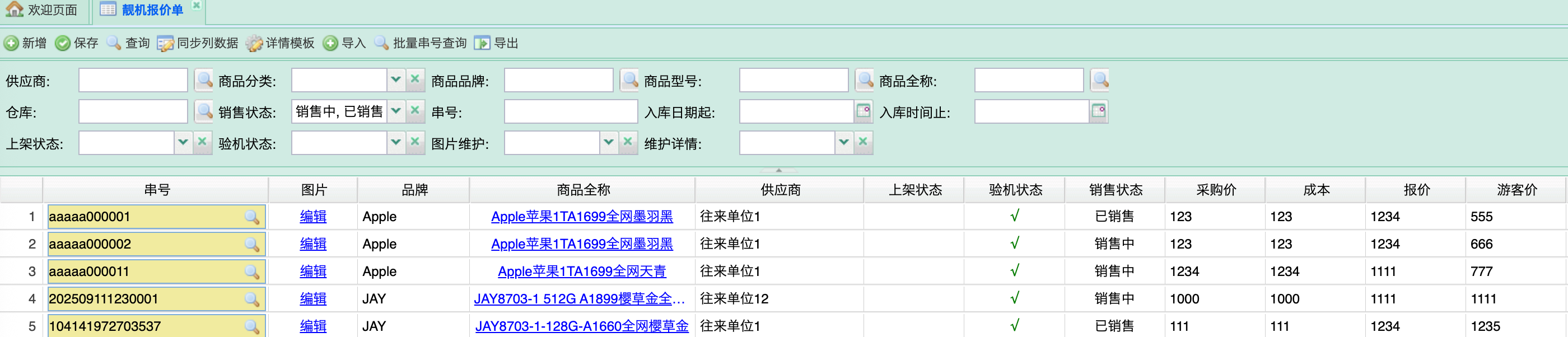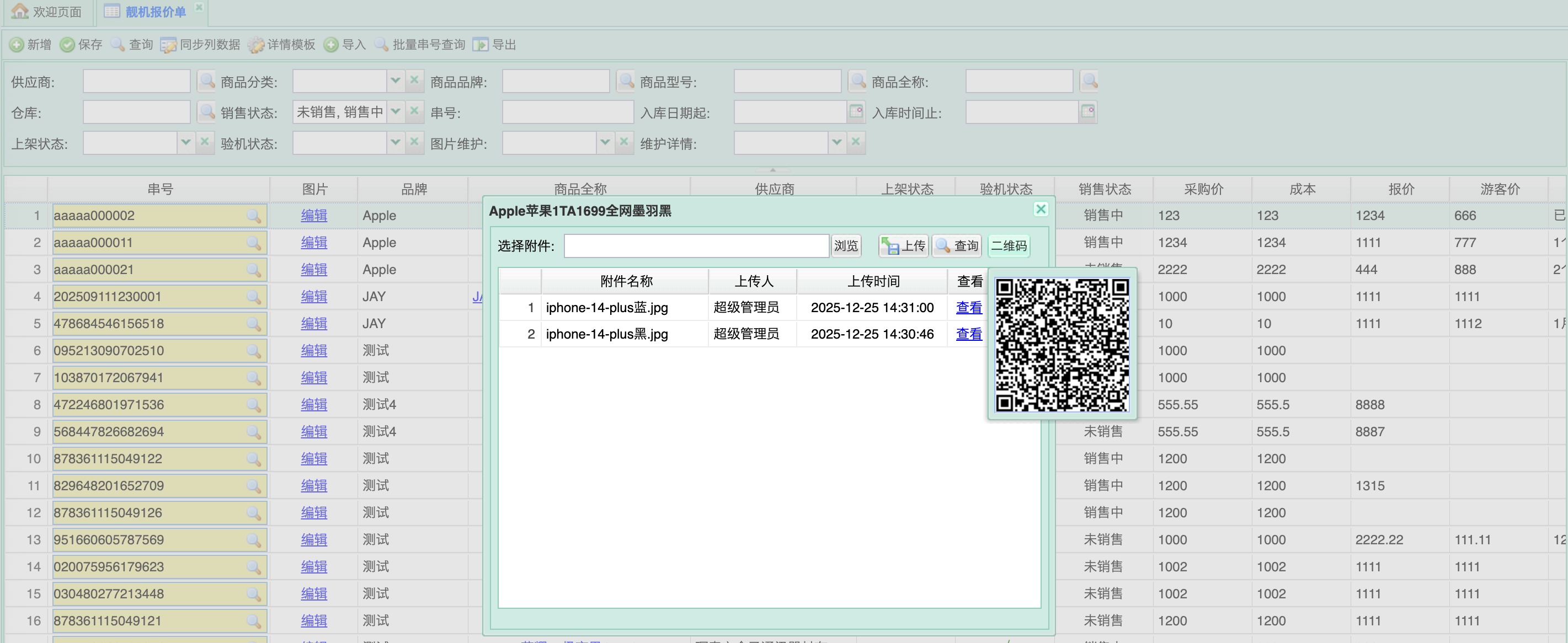 1.1 靓机串号维护(商品档案与上架管理)