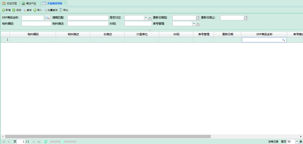 - 物料编码:支持模糊查询天音的商品编码。